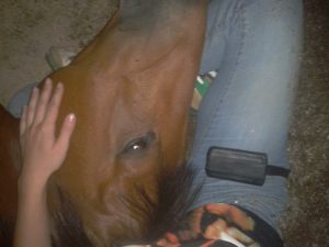 In nekaj trenutkov kasneje so se mi orosile oči, ko je njegova ogromna glava ležala v mojem naročju, popolnoma predan meni, z največjim zaupanjem, ki mi ga lahko izkaže konj. Bila sem osupla in vedela sem, da če ne zaradi drugega, je moja diplomska naloga nekaj najboljšega, kar sem imela čast doživeti in izkusiti. Prav tako pa me je ta trenutek verjetno za vedno zaznamoval za človeka iz kluba “Crazy horse people” 🙂