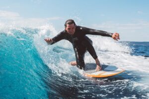 Surfanje mu ni pomenilo le športa, temveč svobodo. Individualnost. Odmik od pričakovanj drugih. A tudi tam se je pojavilo ključno vprašanje: kako živeti tako, da lahko počneš to, kar te zares izpolnjuje? Odgovor je našel v ustvarjanju pasivnih prihodkov in v svetu nepremičnin – ne iz pohlepa, temveč iz potrebe po času. Času za življenje.